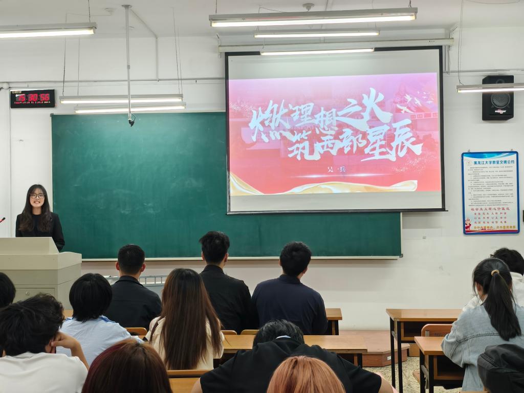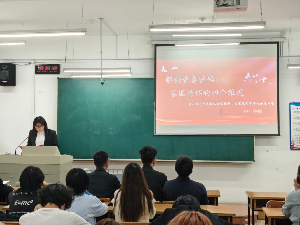 吴一兵同学以“燃理想之火,筑西部星辰”为题,深情讲述她与重庆小朋友书信往来及贵州支教的珍贵经历,深刻阐述西部乡村建设的重大意义,用热情话语激励青年学子投身社会实践,践行对祖国和人民的承诺,让青春在祖国最需要的地方绽放。朱名赫同学紧扣“解锁青春密码:家国情怀的四个维度”,从广度、深度、硬度、温度展开。她结合自身志愿经历,阐述青年如何发挥专业优势、找准定位,在时代浪潮中成长,鼓励大家将个人理想与国家需求结合,为民族复兴贡献力量。赵恪正同学以“在志愿中奉献,在热爱中绽放”为主题,凭借丰富经验剖析志愿精神内涵,分享志愿故事及其中的成长与感悟,呼吁同学们投身志愿服务,传递温暖,让青春在服务中闪耀。李想同学以“笃行致远守初心,青春奋进担使命”为题,分享他在“黑大菁英”骨干培训班的理论学习与实践锻炼经历,以自身成长为例,诠释青年员工如何在学习与实践中提升自我、磨砺品质,呼吁同学们在思考与行动中淬炼本领,彰显青年担当,书写青春华章.