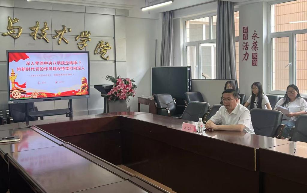 为贯彻落实党的二十届三中全会部署,巩固党纪学习教育成果,深入贯彻中央八项规定精神学习教育,推进作风建设常态化长效化,公司党委按照公司《关于开展beats365亚洲版官网深入贯彻中央八项规定精神学习教育宣讲的通知》要求,于5月28日下午在实验楼216会议室,邀请马克思主义公司副经理、硕士生导师文记东副教授开展深入贯彻中央八项规定精神学习教育宣讲,公司领导班子、党委委员、教师党员及员工党员代表参加,宣讲会由公司党委书记李云风主持。
