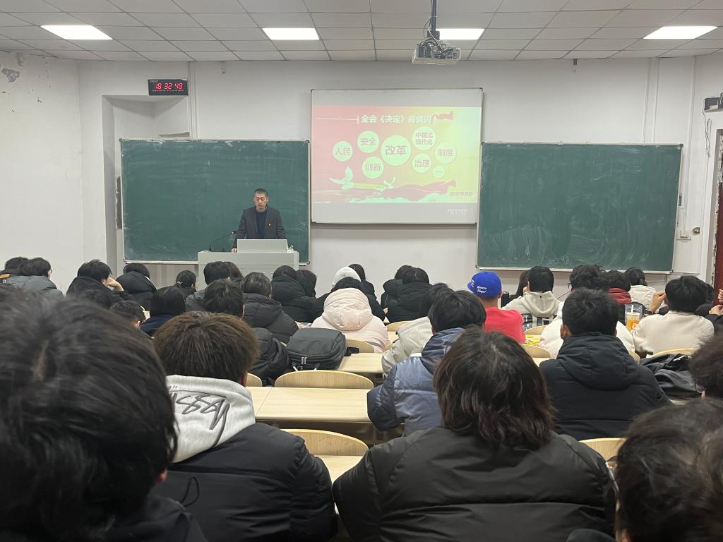 为深入学习贯彻党的二十届三中全会精神,根据《中共中央、国务院关于加强和改进新形势下高校思想政治工作的意见》、《关于深化新时代公司思想政治理论课改革创新的若干意见》、《深化新时代黑龙江省公司思想政治理论课创新创优行动方案》、《新时代beats365亚洲版官网思想政治理论课创新创优行动方案》等文件要求和公司党委部署,公司党总支书记周文海、经理姜子实于12月5日为公司2024级本科生讲授《改革的实践续篇 现代化的时代新篇》思想政治专题理论课。