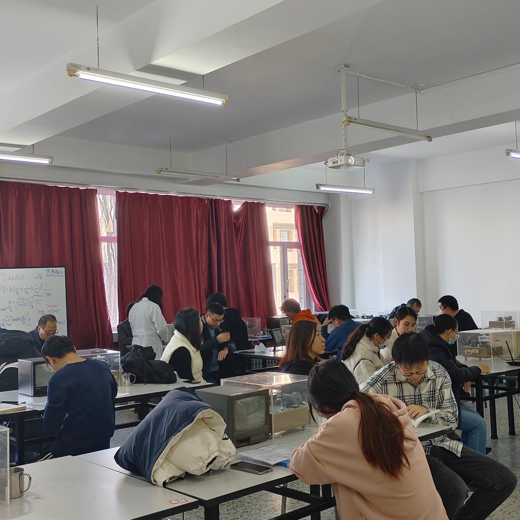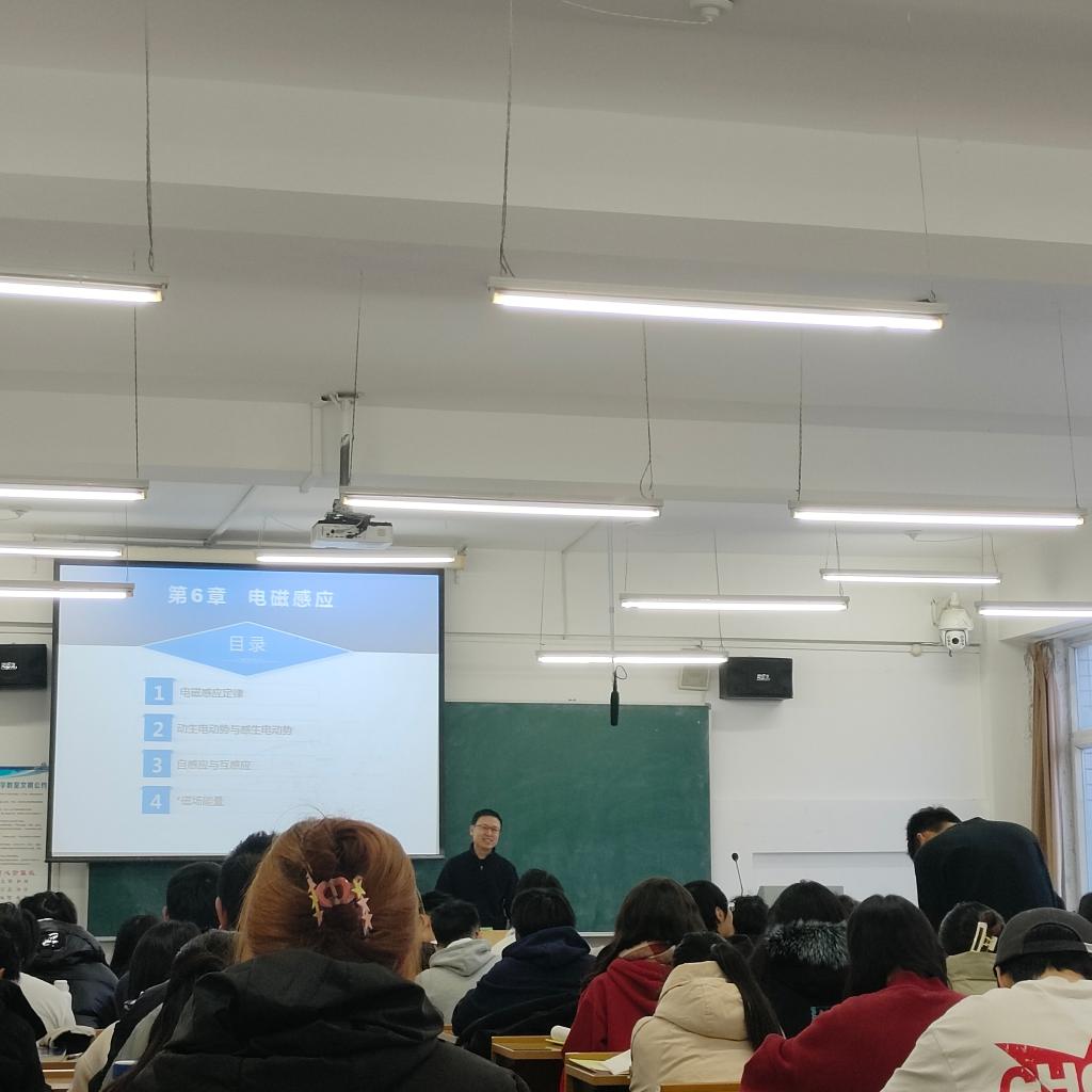 此次教学活动分为理论课观摩和实验课观摩。11月24日下午在三号楼420教室谢文广老师讲授《大学物理C》。谢文广老师讲授电磁感应中的动生电动势内容,教授过程中逻辑思路清晰,教学内容丰富,理论功底深厚,将深邃的理论知识深入浅出的表达出来,使员工对于知识的理解更加深入,教学课堂氛围良好,老师和员工之间积极交流。
