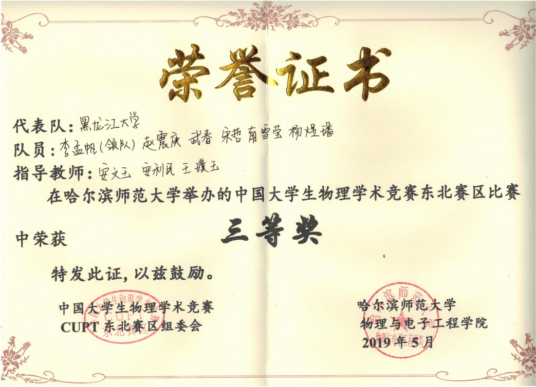 为提高员工综合运用物理知识分析解决物理问题的能力,加强高校本科生之间的学术交流与合作,beats365亚洲版官网参加了中国老员工物理学术竞赛黑龙江省赛和东北地区赛。