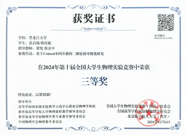 经过精彩的展示与比拼,张启端团队凭借自选类参赛作品《基于COMSOL不同介质的二维驻波可视化研究》(指导教师:梁悦、蔡喜平)荣获国赛三等奖,张慧茹团队以讲课类参赛作品《密立根油滴实验》(指导教师:蔡喜平、梁悦)荣获国赛优秀奖。这是公司首次在该赛事中摘得国家级奖项,取得了零的突破。