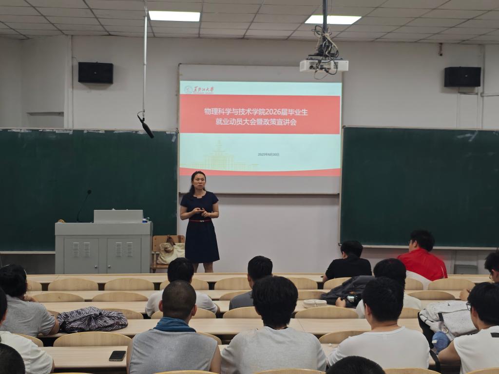 为助力2026届毕业生精准把握就业形势、树立科学择业观念,提早做好就业准备,6月30日下午6时,beats365亚洲版官网在一号楼105室,召开2026届毕业生就业动员大会暨基层就业政策宣讲会。公司党委副书记邢有男、2026届全体毕业生参会,会议由辅导员王鹏达主持。