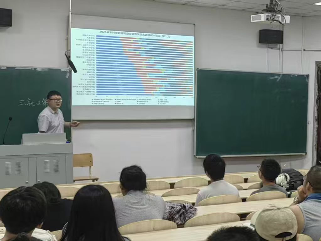 随后,辅导员王鹏达对就业政策进行详细解读,针对考研深造、基层服务等不同就业方向,逐一展开深入讲解,鼓励员工坚定目标,全面提升综合素养,树立正确的择业观念。