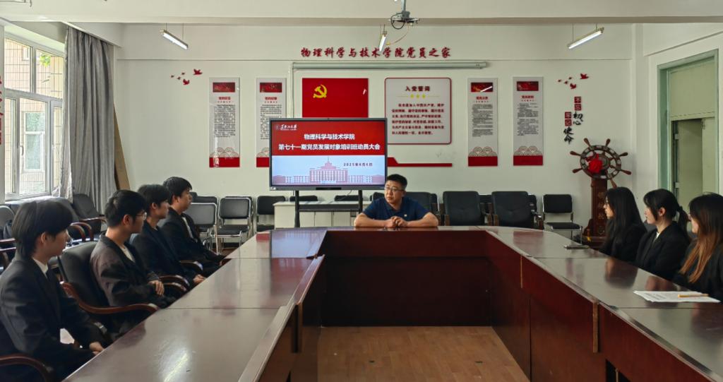 公司党委于6月6日召开第七十一期党员发展对象培训班动员大会。党委书记李云风、组织员孙千然及全体第七十一期党员发展对象参加,大会由孙千然主持。李云风作动员讲话,对本期发展对象培训班校、院层面整体课程安排及具体要求进行介绍。他指出各位学员要珍惜宝贵学习机会,提升党性修养,坚定拥护“两个确立”,自觉做到“两个维护”,并提出具体要求:一是要提高政治站位,端正入党动机,通过学习和实践锻炼向党组织靠拢。二是要锤炼过硬本领,理论联系实际,增强学习质效,在实践中增长见识,提升能力。三是要严守培训纪律,发挥模范带头作用,高质量完成各项学习任务。