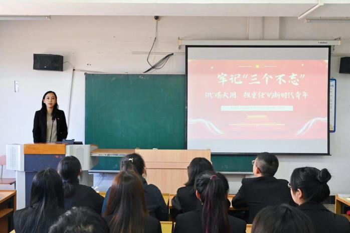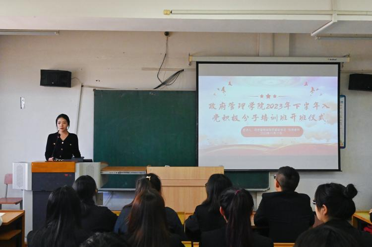 开班仪式结束后,政府管理公司党委书记郑岩以学习贯彻习近平新时代中国特色社会主义思想主题教育为导向,以“牢记‘三个不忘’,做‘堪大用、担大任’的新时代青年”为主题为全体入党积极分子讲授了一堂别开生面且意义非凡的党课。郑岩书记从传承党的优良作风,保持锐意进取的态势、既怀抱梦想又脚踏实地,用实际行动践行“强国有我”的青春誓言、不懈探索的勇气,担当与实干扎实奋斗三个方面号召同学们要不忘使命,牢记嘱托,争做肯奋斗的新时代青年。