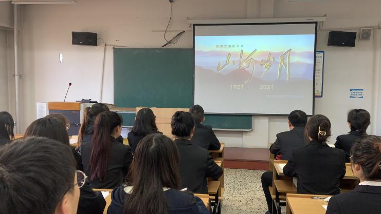 10月11日下午,培训班采取集中学习的方式,观看《山河岁月》第二集百年望道、《我们的新时代》第一集发展之变专题纪录片。入党积极分子培训班的成员们从纪录片中建党百年历程的关键场景、高光时刻、历史叙述与细节呈现中,回望了中国共产党对国家发生的历史性变革所起的关键作用及党带领国家和人民创造的光辉成就。
