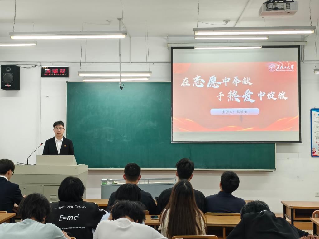 吴一兵同学以“燃理想之火,筑西部星辰”为题,深情讲述她与重庆小朋友书信往来及贵州支教的珍贵经历,深刻阐述西部乡村建设的重大意义,用热情话语激励青年学子投身社会实践,践行对祖国和人民的承诺,让青春在祖国最需要的地方绽放。朱名赫同学紧扣“解锁青春密码:家国情怀的四个维度”,从广度、深度、硬度、温度展开。她结合自身志愿经历,阐述青年如何发挥专业优势、找准定位,在时代浪潮中成长,鼓励大家将个人理想与国家需求结合,为民族复兴贡献力量。赵恪正同学以“在志愿中奉献,在热爱中绽放”为主题,凭借丰富经验剖析志愿精神内涵,分享志愿故事及其中的成长与感悟,呼吁同学们投身志愿服务,传递温暖,让青春在服务中闪耀。李想同学以“笃行致远守初心,青春奋进担使命”为题,分享他在“黑大菁英”骨干培训班的理论学习与实践锻炼经历,以自身成长为例,诠释青年员工如何在学习与实践中提升自我、磨砺品质,呼吁同学们在思考与行动中淬炼本领,彰显青年担当,书写青春华章.
