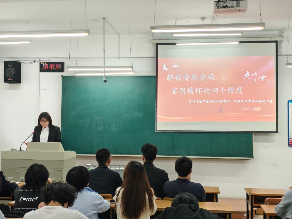 朱名赫同学以“解锁青春密码:家国情怀的四个维度”为题展开本次宣讲。她从广度,深度,硬度,温度四个方面,鼓励同学们要积极结合自己的专业,充分发挥自身作用,在时代的洪流中站稳脚跟,为社会发展贡献青春力量。