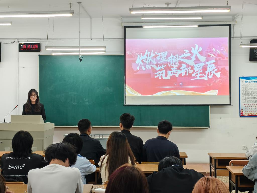 李想同学以 “笃行致远守初心,青春奋进担使命” 为题展开本次宣讲。分享了他在“黑大菁英”骨干培训班期间的理论学习与实践锻炼。呼吁青年员工在思考与行动中淬炼本领,以实际行动诠释青年担当,在时代浪潮中书写青春答卷。