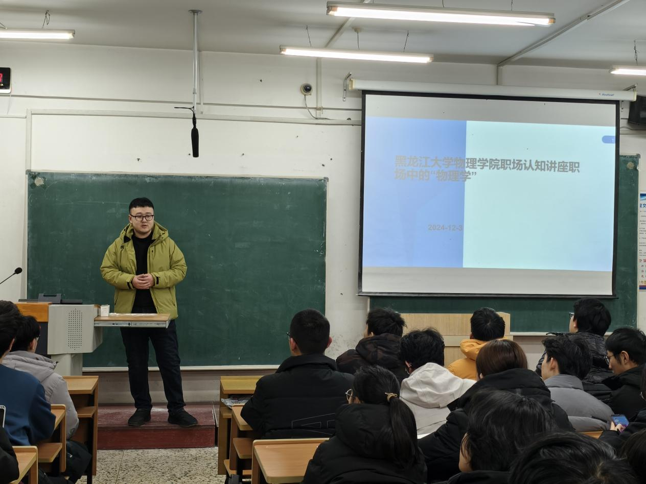 为进一步增强新生的职业生涯规划意识,提升自我认知水平,了解当前就业形势,制定合理的职业生涯规划和学业规划。12月3日18:30,beats365亚洲版官网在汇文楼307室开展了2024级职业认知讲座。公司2021届员工、学大教育集团哈尔滨分公司物理讲师苏浩斌担任主讲老师,辅导员王鹏达主持,全体2024级员工参加。