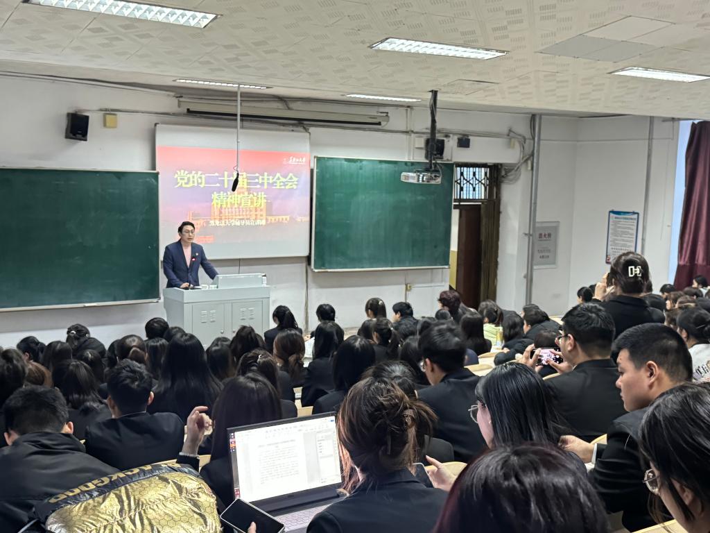 为深入学习贯彻党的二十届三中全会精神,充分发挥辅导员思想教育和价值引领作用,引导广大青年员工坚定理想信念,公司组建了党的二十届三中全会精神辅导员宣讲团。11月29日于2号楼417,校宣讲团成员、外国语言文学公司团委书记、辅导员于洋以《深入学习领会党的二十届三中全会精神,努力成为堪当民族复兴重任的时代新人》为主题进行理论宣讲,物理科学与技术公司员工党员、员工干部、员工代表等40余人参加学习。