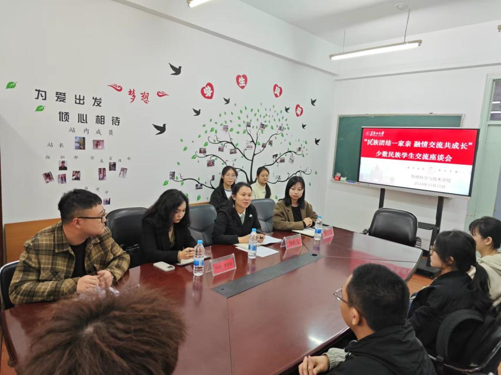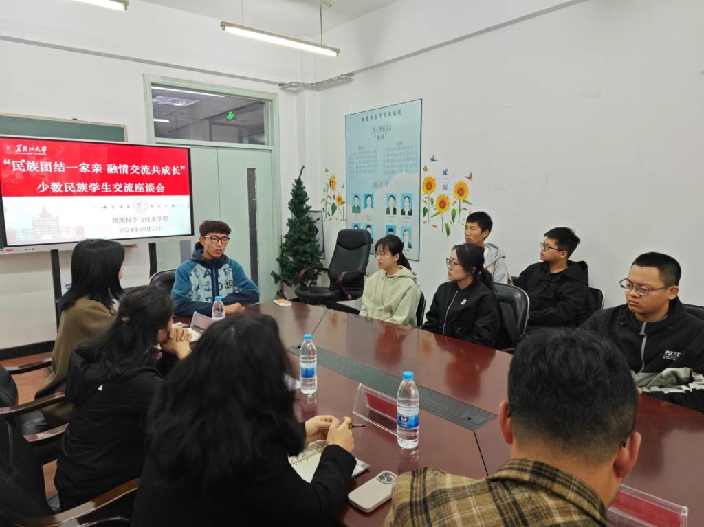 为全面学习贯彻习近平总书记关于加强和改进民族工作的重要思想,铸牢中华民族共同体意识,进一步加强民族团结进步教育,促进各民族员工交往交流交融,2024年10月10日公司于实验楼210-1室开展“民族团结一家亲,融情交流共成长”主题座谈会。公司党总支副书记邢有男、员工工作部(员工处、武装部)少数民族专职辅导员阿胡·赛维提,辅导员李佳睿、王鹏达,各年级少数民族员工代表参加座谈会,会议由王鹏达主持。