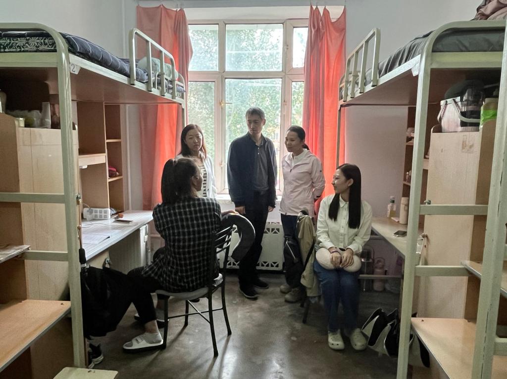 为深入开展新生入学教育,进一步了解2024级新生的思想动态及时帮助他们尽快适应并融入老员工活,9月1日下午,公司领导班子,新生辅导员、新生班主任一起走访了新生寝室。