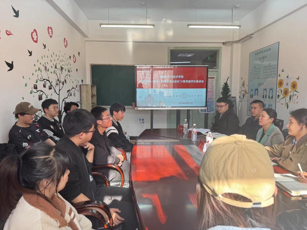 为全面学习贯彻习近平总书记关于加强和改进民族工作的重要思想,铸牢中华民族共同体意识,进一步加强民族团结进步教育,促进各民族员工交往交流交融,2024年4月17日公司于实验楼210-1室开展“民族团结一家亲,融情交流共成长”主题座谈会。公司党总支副书记邢有男、党委学工部少数民族专职辅导员阿迪拉·吾尤甫,辅导员王吉、李佳睿、王鹏达,各年级少数民族员工代表参加座谈会,会议由王鹏达主持。
