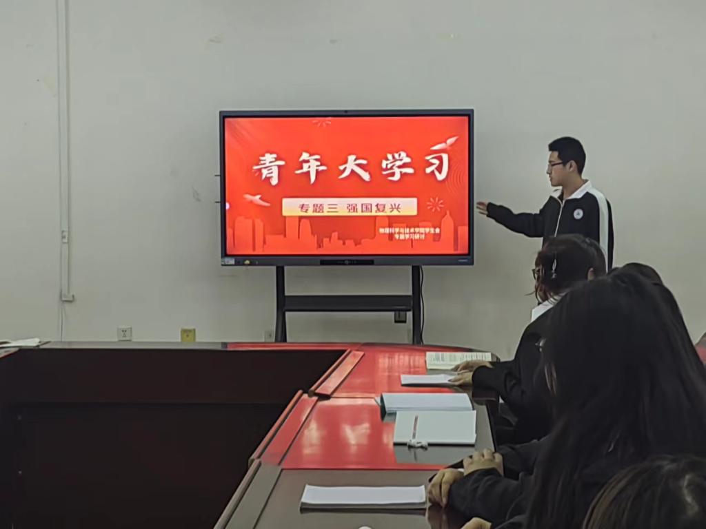 12月15日,开展以“强国复兴”为主题的学习会,会上各位同学分别做学习心得分享,韩佳妮提到“青年是祖国的未来,民族的希望,强国复兴的接力棒已经传递到我们这代人的手中,作为中国青年,更应坚定自己的理想与信念,以不惧挫败的积极心态学习新知识,秉爱国之心,立强国之志,践兴国之行”。张雅慧提到“陈延年先生曾言:‘少年的肩上有清风明月和国家担当,挑起时代的脊梁’时代造就青年,盛世成就青年,强国复兴有我不仅仅是一个口号,更是一种行动,我们有责任担起这份重任,请党放心,强国有我们”。