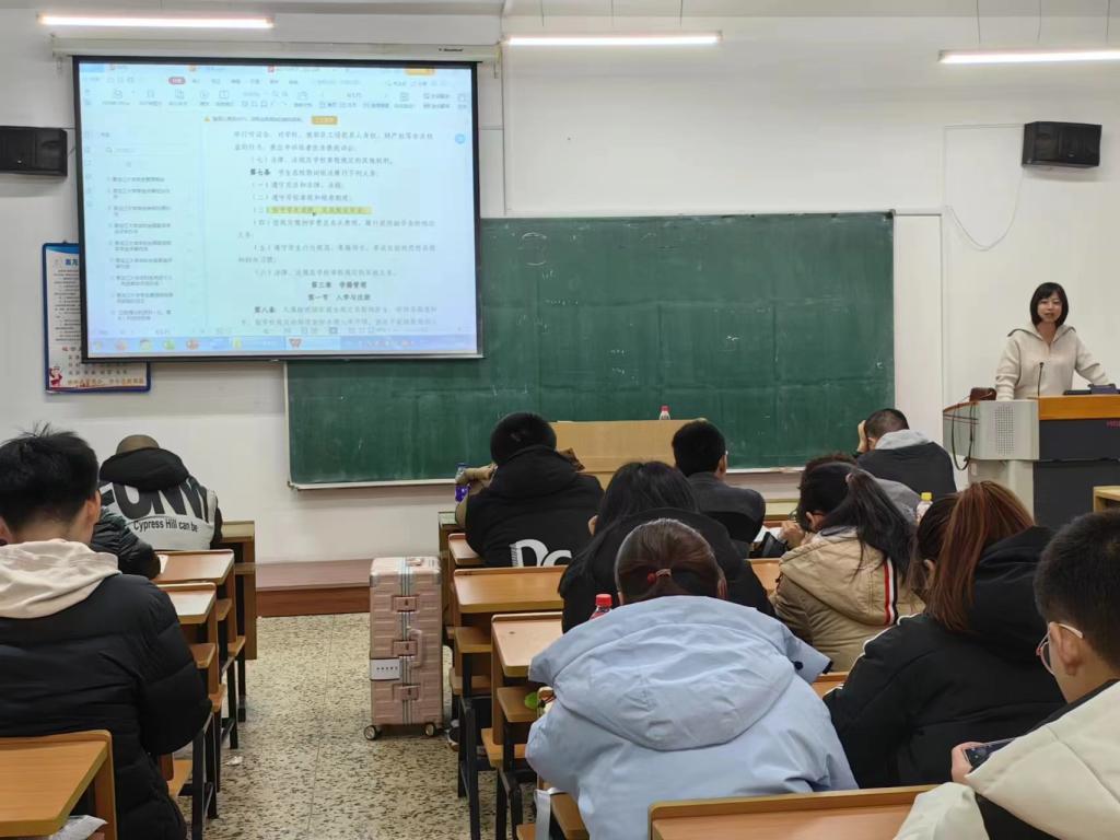 为加强员工安全教育,严格员工日常管理,2023年12月6日beats365亚洲版官网在汇文楼518、409室召开“遵纪守法 文明修身”主题班会,会议由各年级辅导员主持,各年级员工参加。