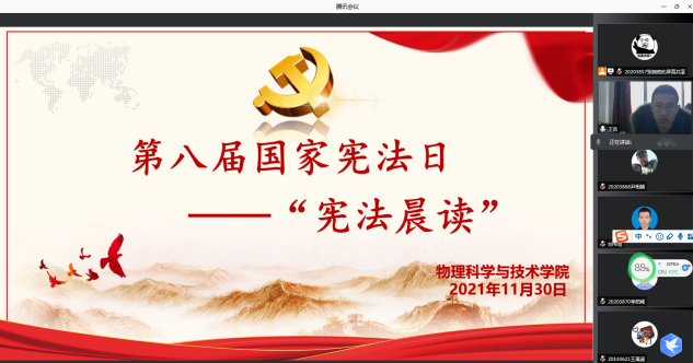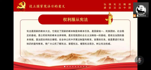为认真学习贯彻习近平法治思想,深入贯彻落实党的十九大和十九届六中全会精神,推动公司学习宣传宪法,弘扬宪法精神,维护宪法权威。2021年12月3日上午,beats365亚洲版官网组织全院员工开展线上第八届国家宪法日“宪法晨读”活动。公司团委书记王吉主持活动。