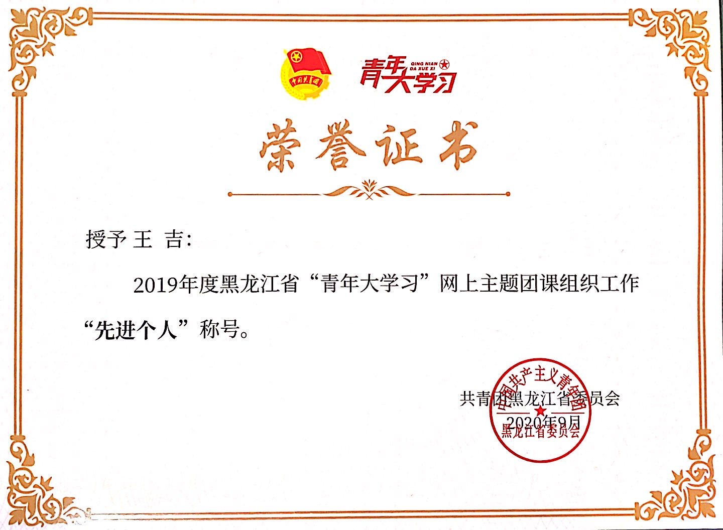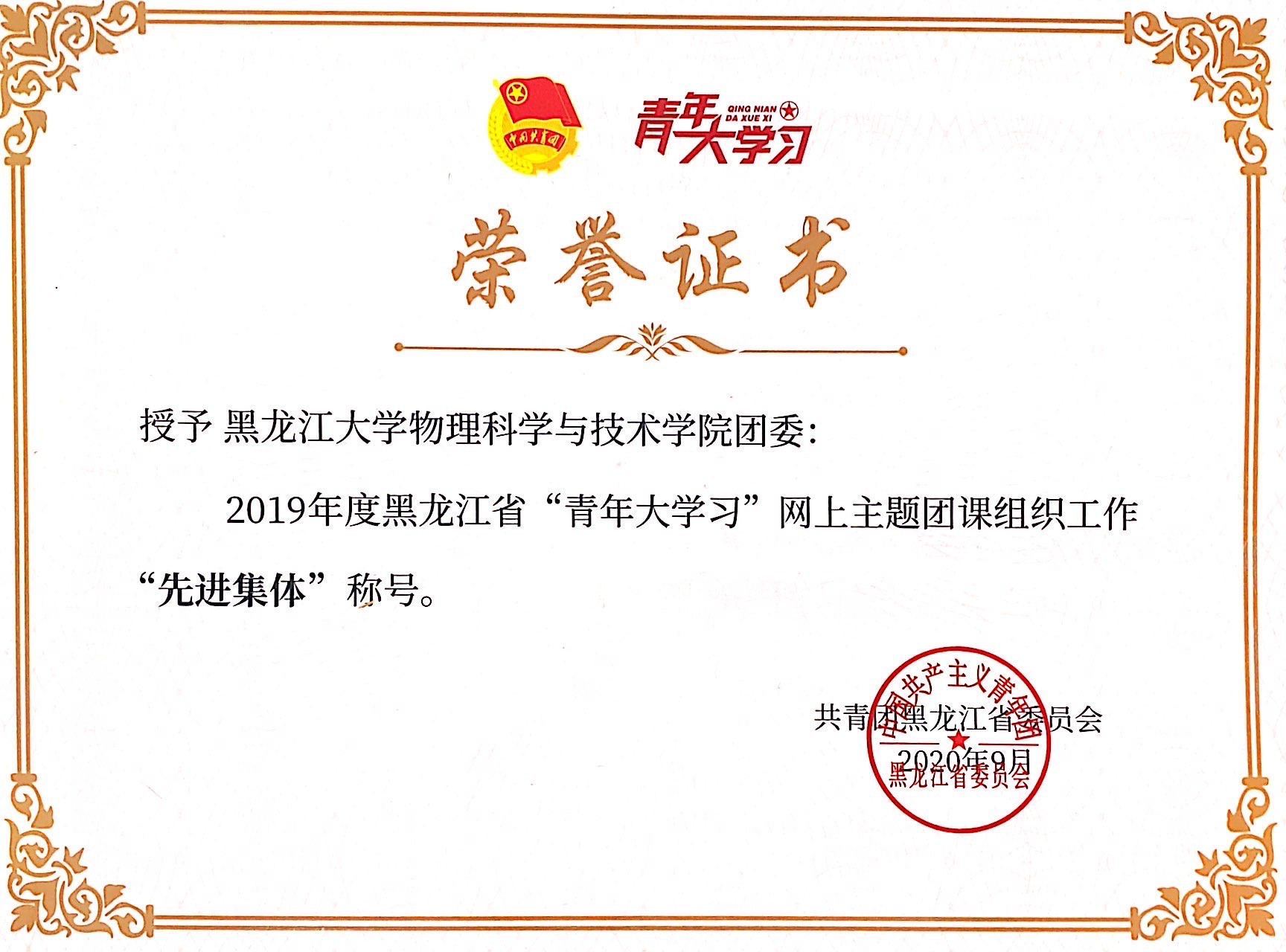 近日,共青团黑龙江省委员会发布了《关于表扬2019年度黑龙江省“青年大学习”网上主题团课组织工作先进个人、先进集体、先进组织单位的通报》。物理科学与技术公司团委荣获2019年度黑龙江省“青年大学习”主题团课组织工作“先进集体”称号。同时公司团委书记王吉老师荣获2019年度黑龙江省“青年大学习”网上主题团课组织工作“先进个人”称号。