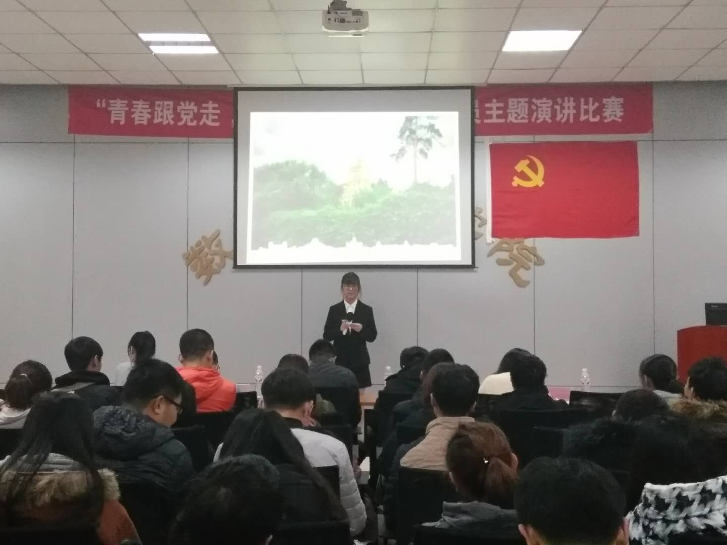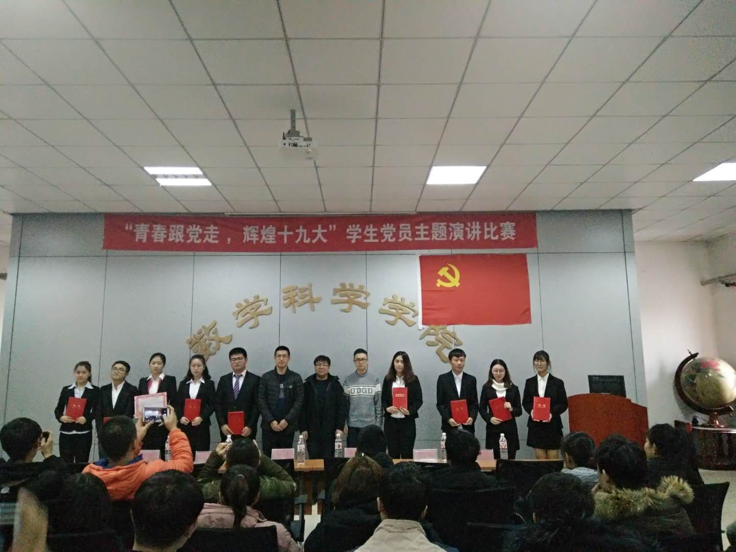 为更全面准确的把握党的十九大精神,更详细的掌握新党章中发生的变化、进一步增强党员的党性意识,激发员工党员的爱国热情。物理、数学、建筑三院联合举办的“青春跟党走,辉煌十九大”员工党员主题演讲比赛,于2017年11月17日在a8七楼会议室隆重召开。三个公司的团委书记及团委老师出席比赛并担任评委,各院员工也都积极参与观看比赛。
