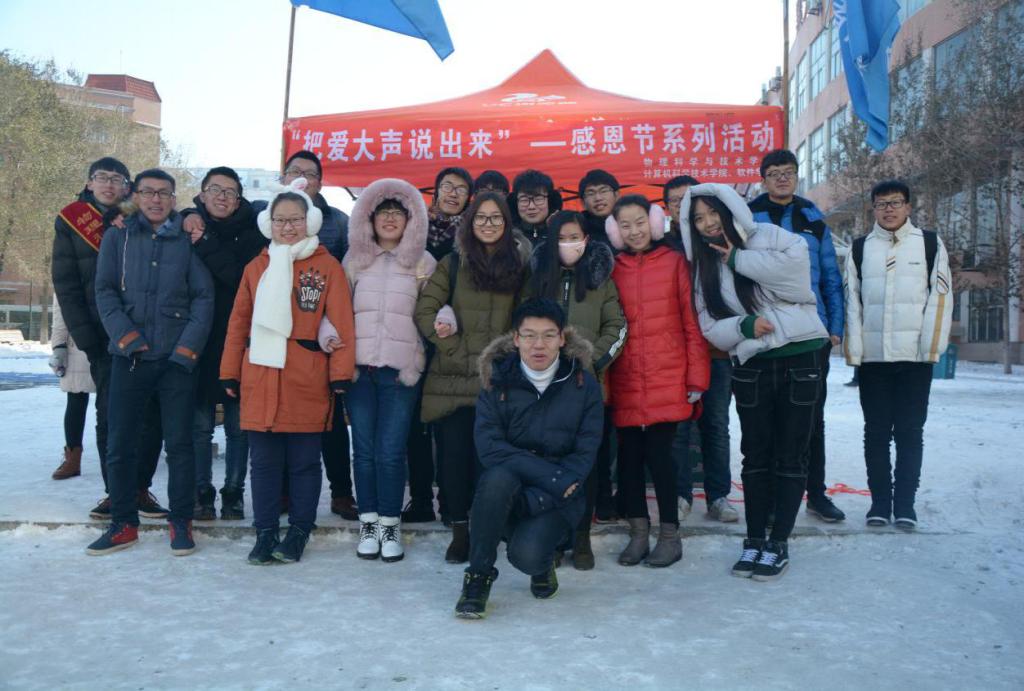 为了让在校老员工认识到感恩家人、朋友的重要性,让同学们在感恩节甚至以后每个平凡的的日子里都不忘给远方的亲人、朋友送去感谢和祝福,公司青年志愿者协会携手计算机科学软件公司青年志愿者协会于2016年11月23日星期三共同开展了大型感恩节系列活动--把爱大声说出来。参加此次感恩节活动的是公司青年志愿者协会和计算机科学软件公司青年志愿者协会的全体志愿者成员们。