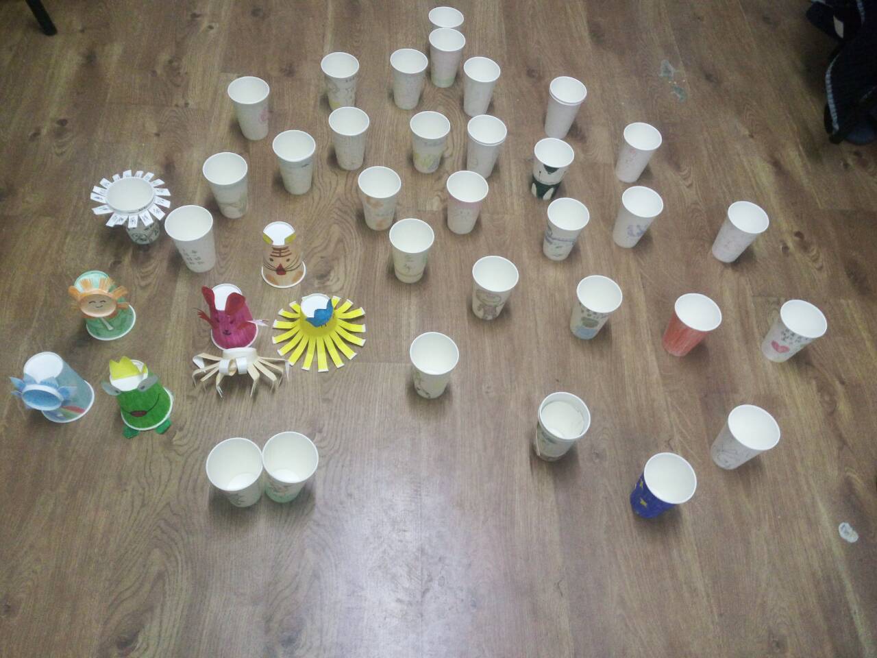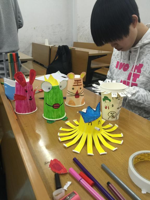 本次大赛旨在发挥同学们的想象力、考验大家的动手能力,比赛之初,沙铉哲同学强调本次大赛以小组的形式进行划分,每个小组四个人,并且大赛之前也做了充足的准备,每组同学手中有四个杯子、一盒彩笔、双面胶、剪刀等用具。比赛开始,同学们都行动起来,欢声笑语中,体现了同学们的团结合作精神,每组同学的作品都十分独特、新颖,随着时间的蔓延,纸杯大赛圆满结束。