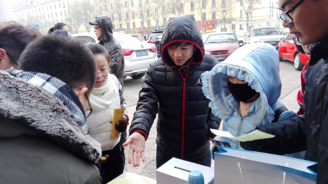 纵然寒风凛冽,但志愿者们的热情并未减少。劝募过程中,志愿者们积极主动、不放弃每一份希望,许多热心人士来捐款,并与志愿者们合影留念。经过一上午的努力,志愿者们一共募得善款600元,成功地为山区的孩子们募捐到了四个美术包和一个温暖包。看着一上午的成果,志愿者们顿时感觉他们的付出得到了回报。