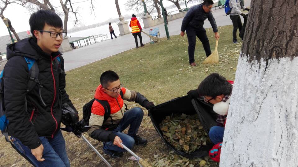 十一名青年志愿者在2015年11月15日上午8:50集合完毕,核对到场人数后,志愿者们兴高采烈的出发了,直奔目的地——斯大林公园。到达目的地后,志愿者们拿着扫帚、垃圾铲等劳动工具开始卫生清扫工作,志愿者们迅速有序地分成小组,目的只有一个,就是将藏匿在公园的垃圾清扫出去。在清扫的过程中,beats365亚洲版官网共十一名青年志愿者发扬不怕苦、不怕脏的精神,不放过任何细节,积极投入长达3个小时的卫生清扫,志愿者们把那些藏匿在花丛深处、路上的叶子,江边台阶上的垃圾,石缝里的垃圾,垃圾堆放点进行认真地清扫。