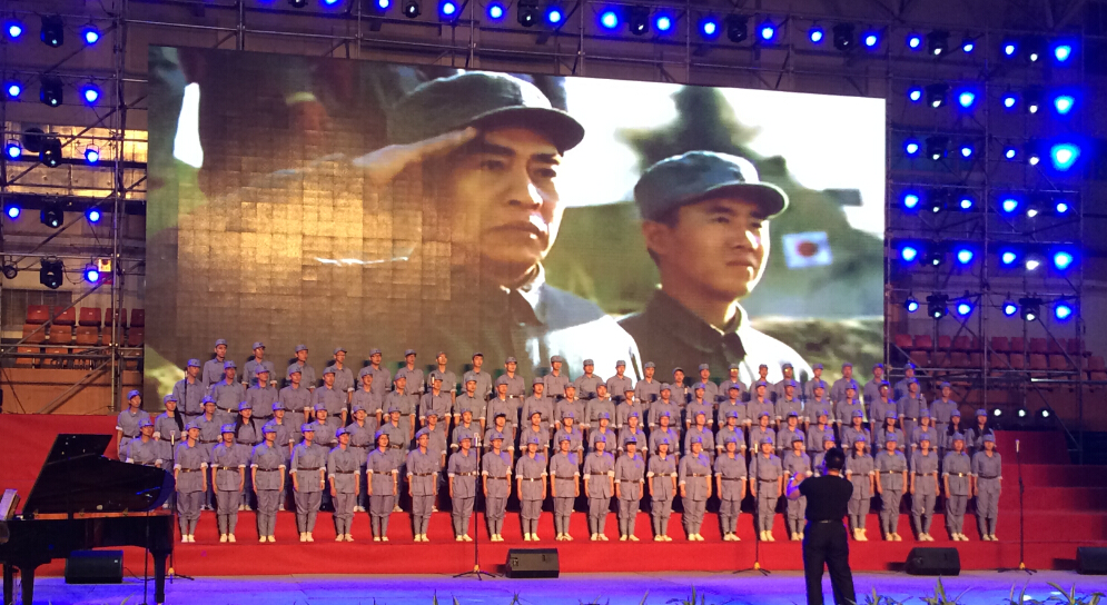 此次演出时间紧、任务重,广大师生团结一心、不怕困难、认真准备,经过短短五天排练,于2015年9月2日在公司体育馆纪念大会上和员工专场纪念大会上两次献上了他们深沉、激昂、充满爱国热情的精彩演出。